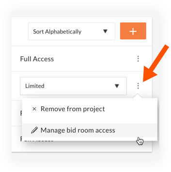 If you want to grant a user with 'Limited' project permissions access to one or more tender rooms, you can manage tender room access in the Team section for the project.