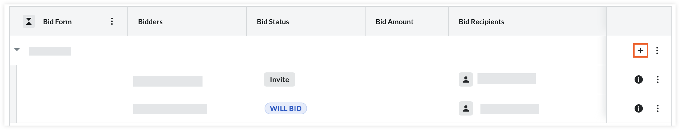 You can manage tender recipients and add new contacts when inviting, adding tenderers or from the 'Bidder' tables. |