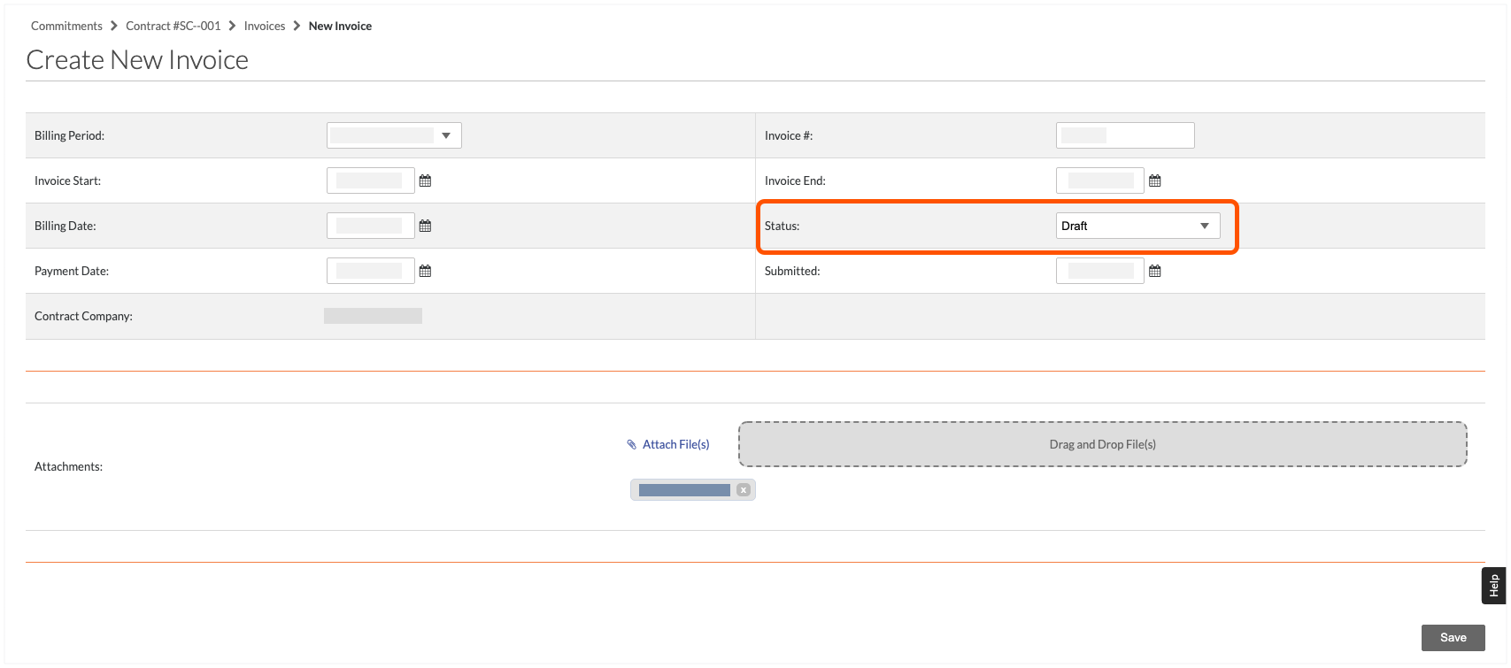 - Scroll to the Attachments area and upload a copy of your signed payment application. You may also attach supplemental documentation related to your payment application, such as any lienwaivers.