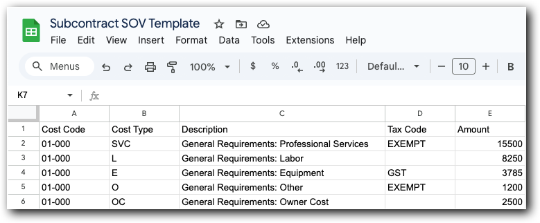 - Cost Code. Enter a cost code for the line item. To learn more, see What are Procore's default cost codes?